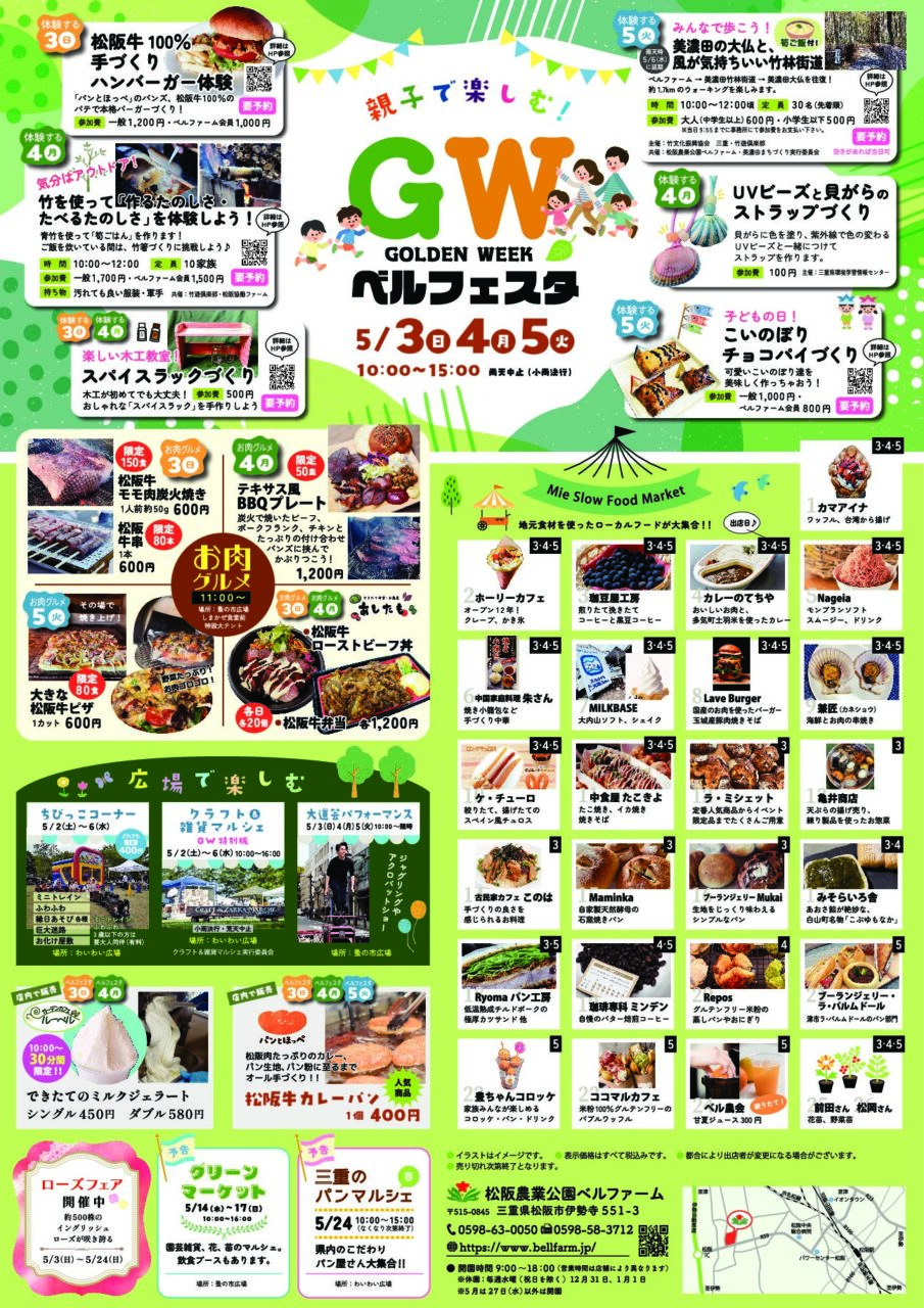 新緑が心地よい季節、ベルファームでは今年も「食」と「体験」が盛りだくさんのゴールデンウィークイベントを開催します! 松阪牛を贅沢に使ったグルメや、親...