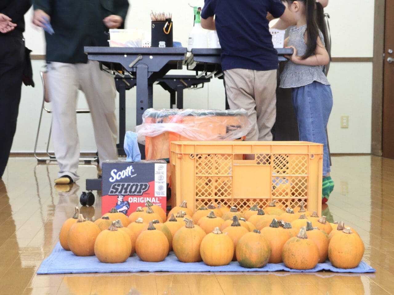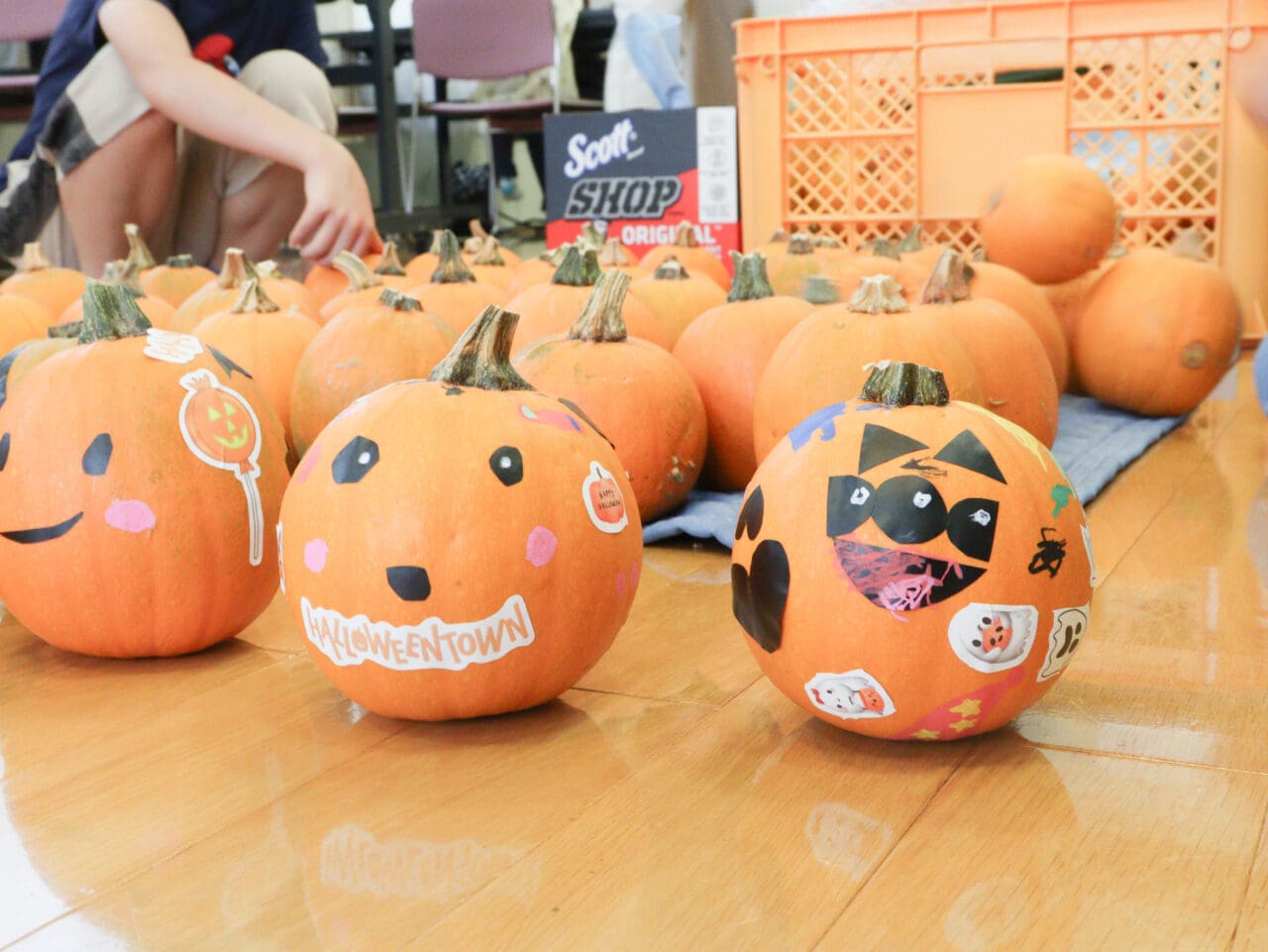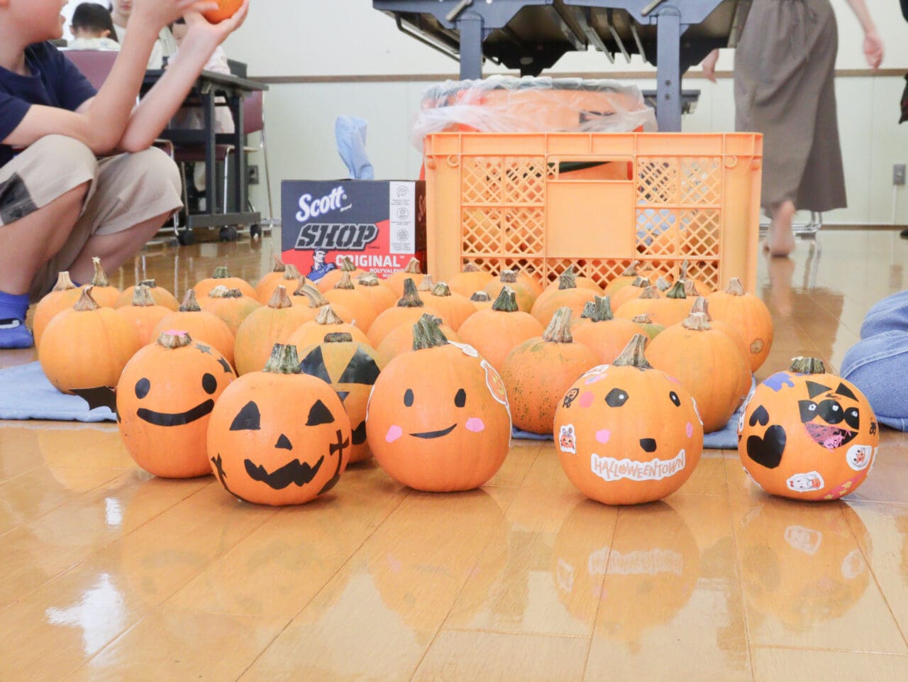 今年は猛暑のため、ハロウィンかぼちゃ収穫がかなわず、絵付け体験のみとなりましたが、とても可愛らしい「おばけかぼちゃ」がたくさんできました!