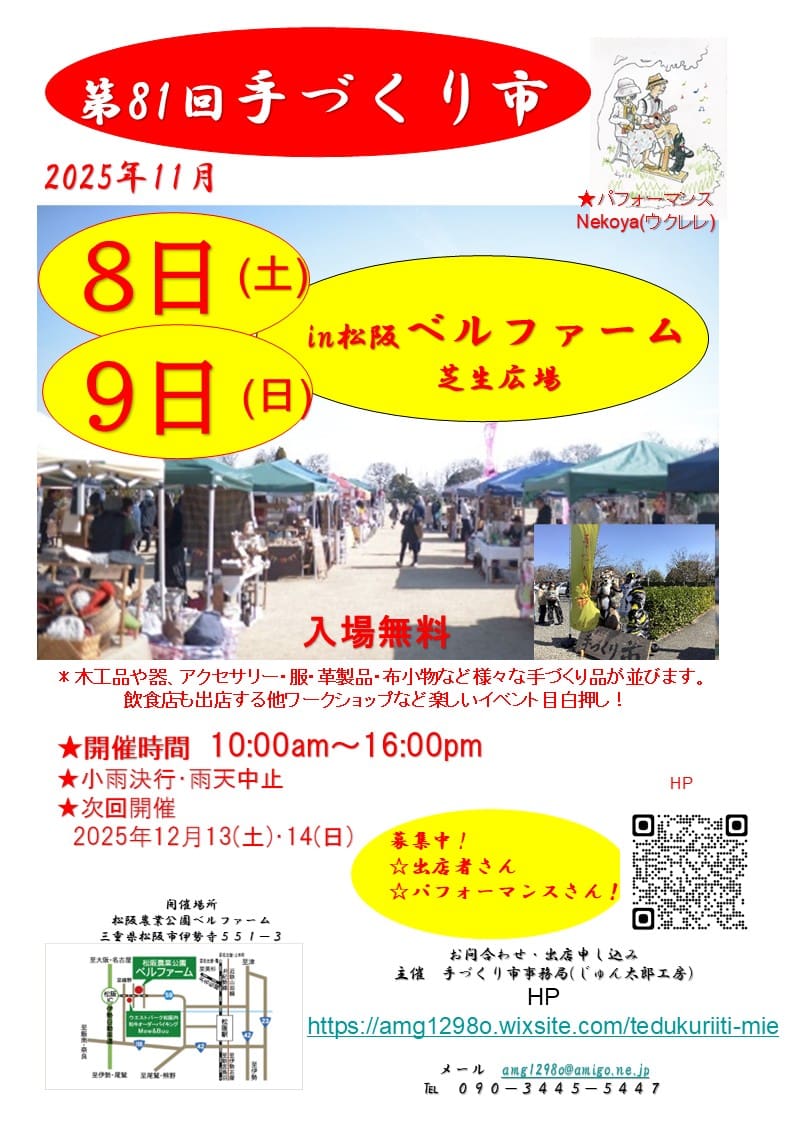 お問い合わせは手づくり市事務局まで。