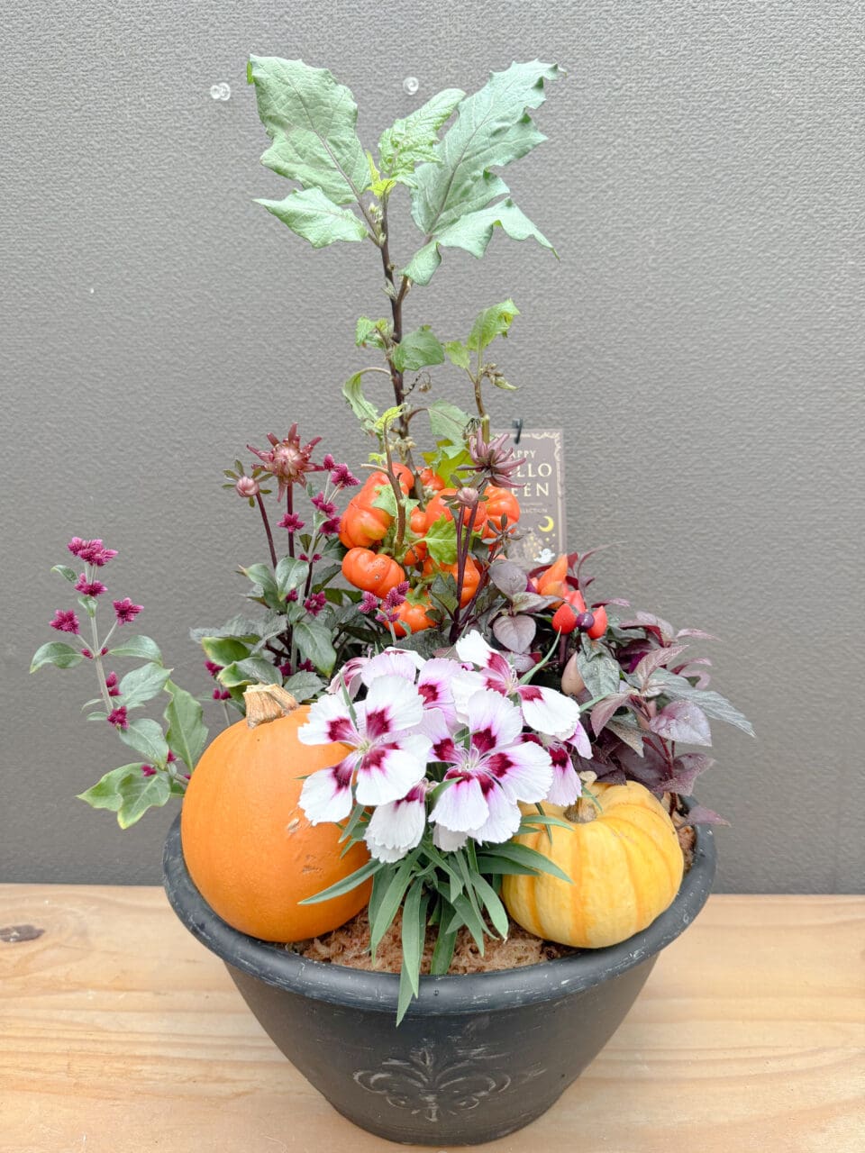 秋の深まりを感じながら、ハロウィンムードたっぷりの寄せ植えを楽しみませんか?