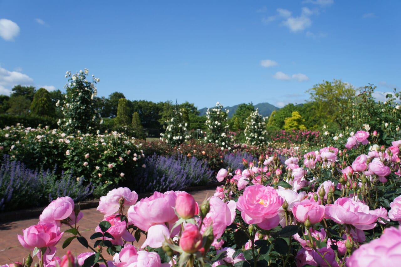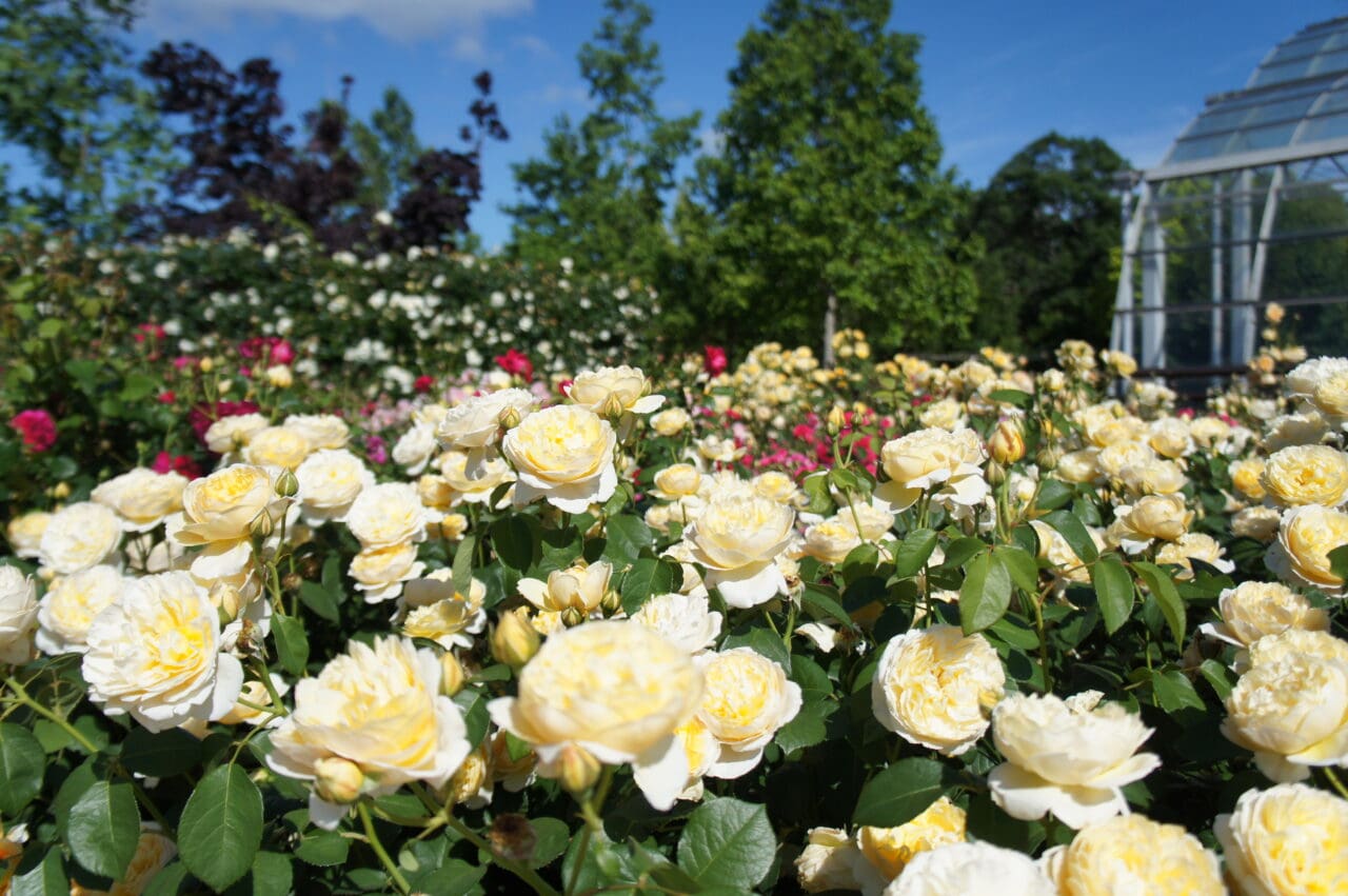 イングリッシュガーデンを眺めながらテラス席でローズフェア限定モーニングプレート、ミンデン珈琲の自家焙煎珈琲をお楽しみいただきます。食事終了後は、開園前のローズガーデンをローズアドバイザーと一緒にご鑑賞いただけます。