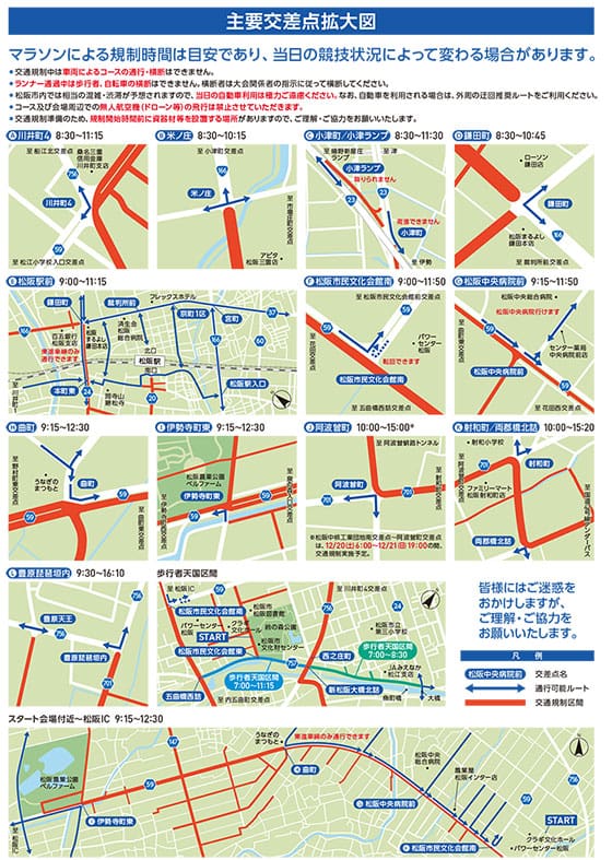 ・ スタート会場付近~松阪IC:9:15~12:30 をご留意ください。